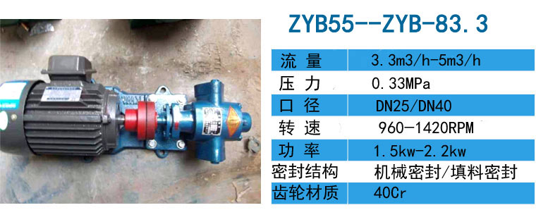 ZYB-55 | G1″ | 3.3 | 55 | 0.33 | 1500 | 1.5 | Y90L-4 | |